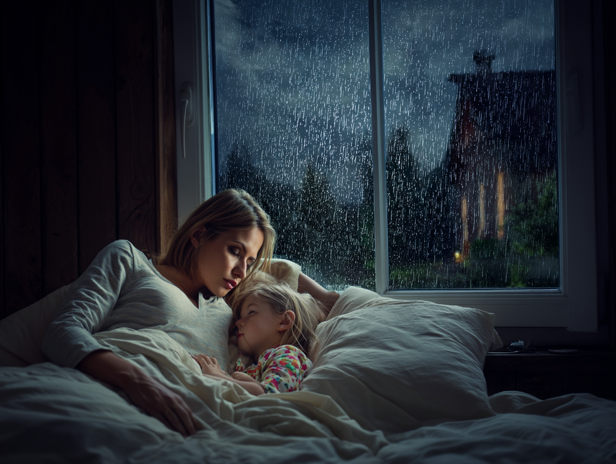 That night, a cold rain hissed against the glass like a warning. The tapping returned—softer this time, almost tentative, as if testing the silence. Lucy sat bolt upright, her pulse quickening in the dark. She reached out and killed the bedside lamp, allowing the shadows to swallow the room so she could focus entirely on the sound. The rhythm was undeniably deliberate: three soft knocks, a suffocating pause, and then one final, solitary tap. Beside her, lost in some innocent dream, Emma let out a chillingly misplaced giggle in her sleep.